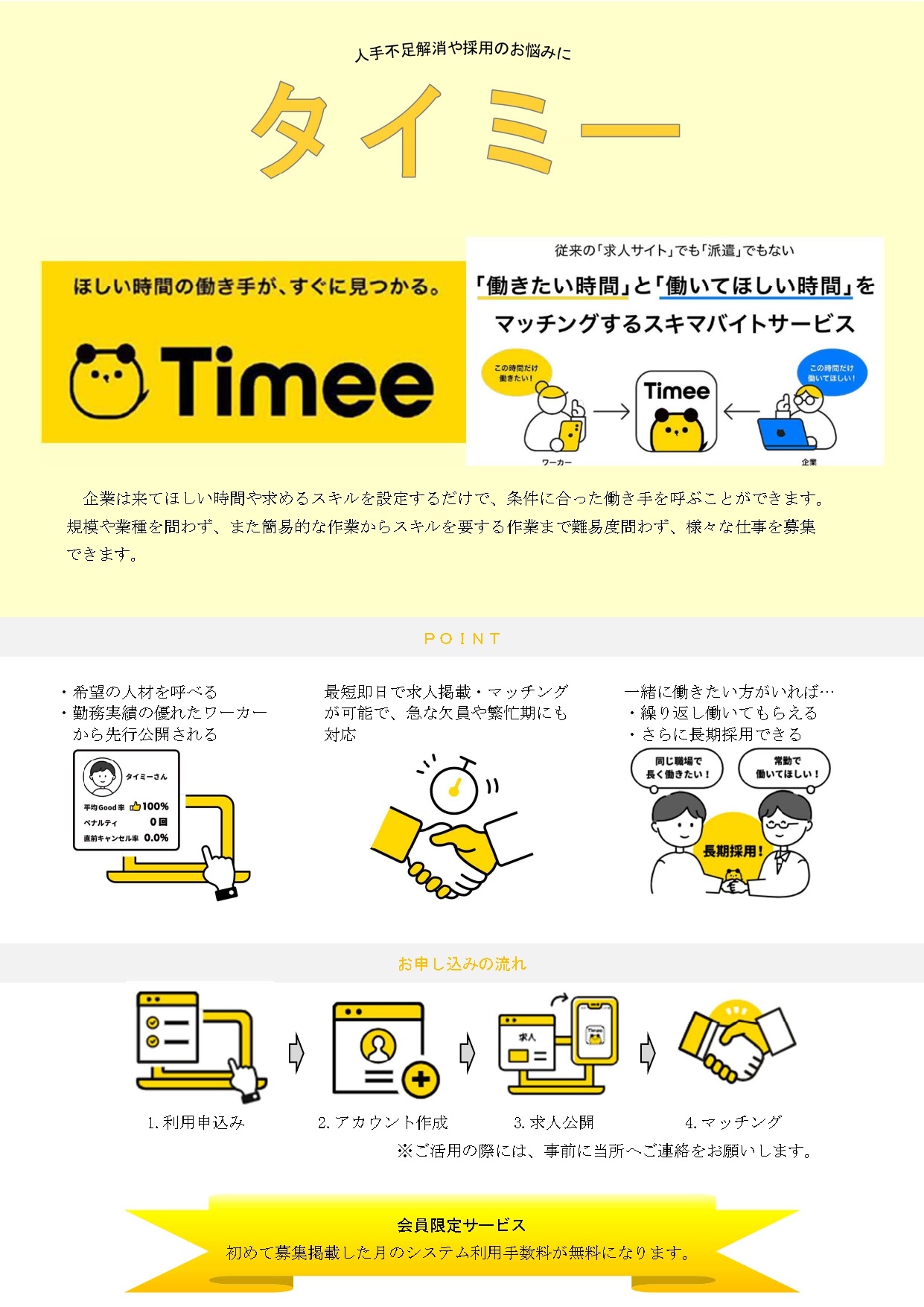 タイミーについての詳細は 株式会社タイミーHP をご覧ください。
